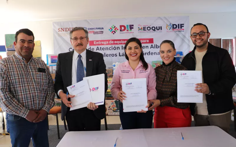 Con el propósito de proporcionar un espacio seguro a las familias de las personas jornaleras agrícolas, el DIF Estatal entregó mobiliario y equipo diverso al Centro de Atención Infantil del seccional de Lázaro Cárdenas, municipio de Meoqui.