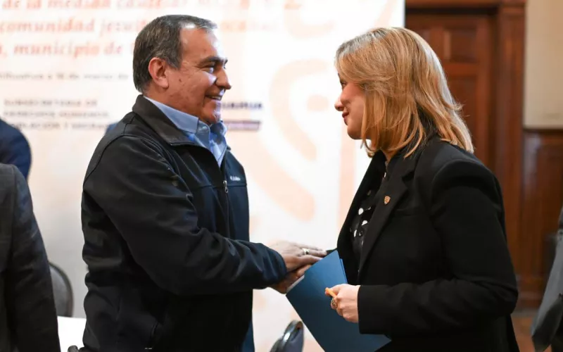 En compañía del secretario de Seguridad Pública del Estado, Gilberto Loya Chávez; el fiscal General del Estado, César Jáuregui Moreno; el secretario de Comunidades y Pueblos Indígenas, Enrique Ráscon y el secretario General de Gobierno, Santiago de la Peña; la gobernadora Maru Campos agradeció la confianza de las personas cauteladas de la comunidad jesuita y dedicó un mensaje de compromiso y gratitud para con ellos al ser una fuente de inspiración para el servicio público.