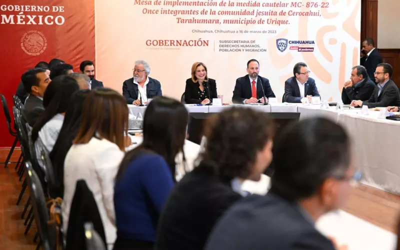 La gobernadora Maru Campos atendió la instalación de la Mesa de Implementación de la Medida Cautelar MC-876-22 Once integrantes de la Comunidad Jesuita de Cerocahui, Tarahumara, Municipio de Urique, la cual fue dispuesta por la Comisión Interamericana de Derechos Humanos (CIDH) y que tiene como objetivo el trazar la ruta de acciones a seguir en favor de las once personas cauteladas de la comunidad jesuita de Cerocahui.