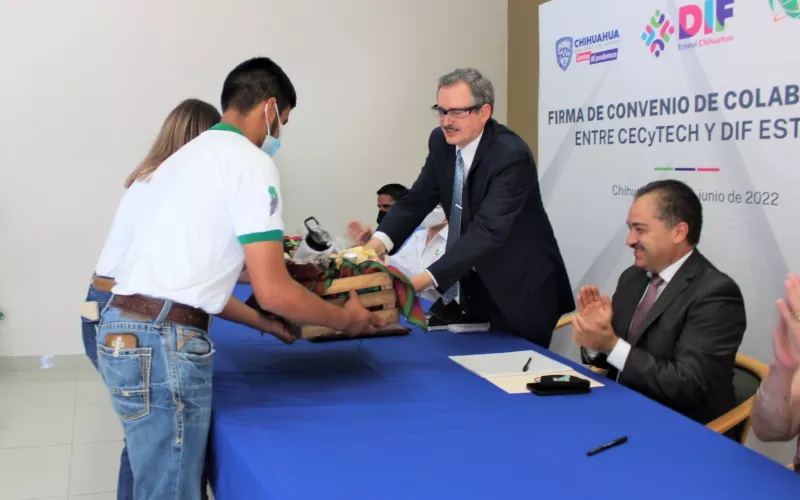 El DIF Estatal y el Colegio de Estudios Científicos y Tecnológicos del Estado de Chihuahua (CECyTECH), firmaron un convenio mediante el cual se oficializa la atención alimenticia que actualmente se brinda a 2 mil 257 estudiantes de la institución que se encuentran en situación vulnerable, con el propósito de evitar que abandonen los estudios.
