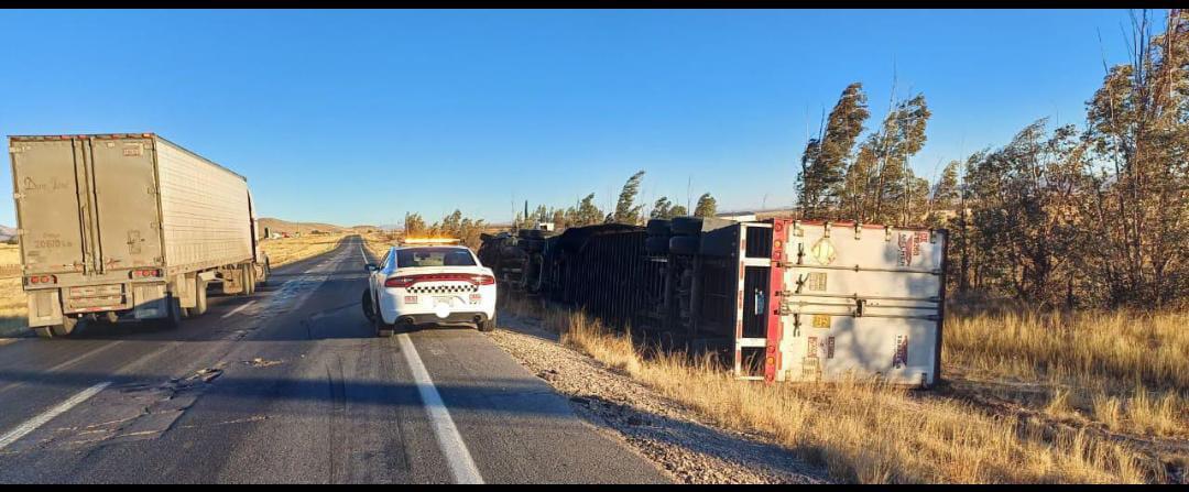 Hasta el momento, se tiene el reporte por parte de la Guardia Nacional sobre la volcadura de 2 tracto camiones sobre el kilómetro 82 del tramo carretero Chihuahua a Juárez, durante la mañana de esta mañana.