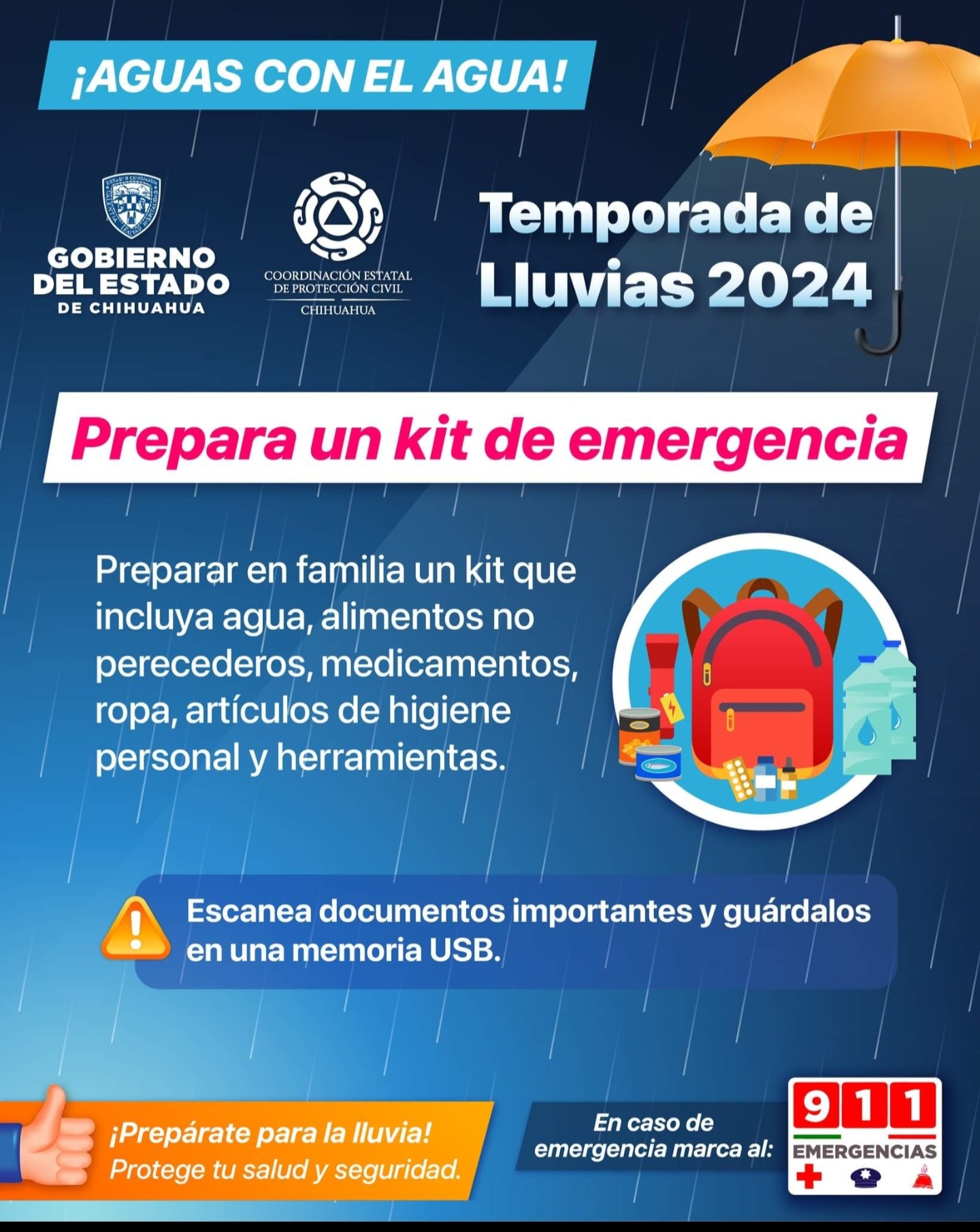 Ante la presencia de fuertes lluvias, la Coordinación Estatal de Protección Civil pidió a los chihuahuenses evitar cruzar cauces de ríos, arroyos, calles inundadas o caminos rurales, además de evitar transitar por lugares en donde pueda haber cables sumergidos, fuentes de energía eléctrica y árboles.