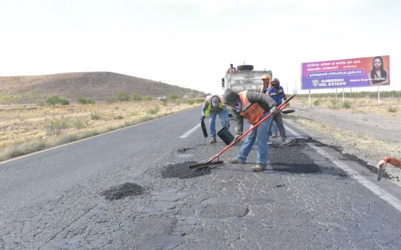 Los trabajos de bacheo ya se llevan a cabo en las zonas críticas del tramo Sacramento-Sueco y se continuará en Nuevo Casas Grandes-Janos y la vía corta a Parral, que son algunos de los que presentan mayores daños.