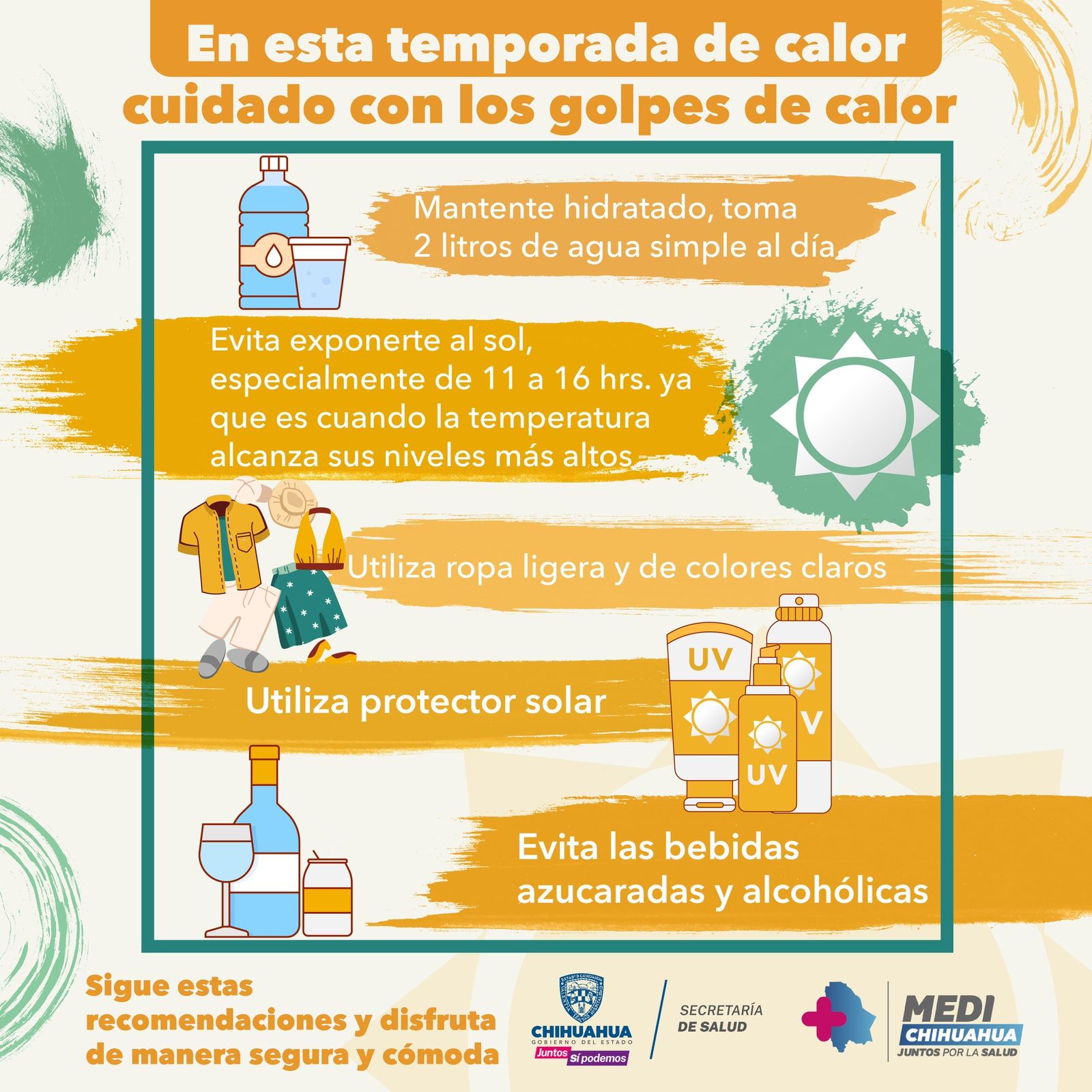 Ante las altas temperaturas que se registran en territorio estatal, la Secretaría de Salud exhortó a la población a mantener las medidas de prevención para evitar complicaciones como insolación, deshidratación, quemaduras o golpes de calor.