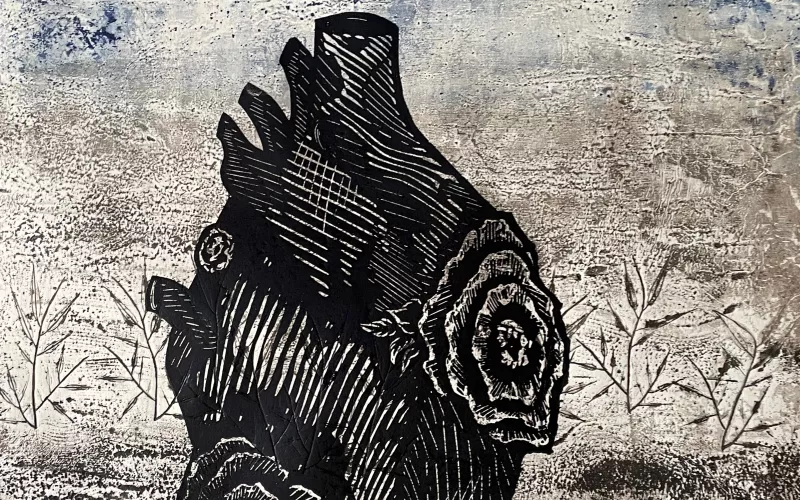 En su exposición “Espejismos norteños” Patricia Márquez muestra una serie de 22 grabados y una pintura collage, que ponen en contraste elementos de lo femenino, como vestidos, siluetas, tacones, encajes, con otros símbolos de soledad, dolor, desierto, juicios y prejuicios de la vida cotidiana.