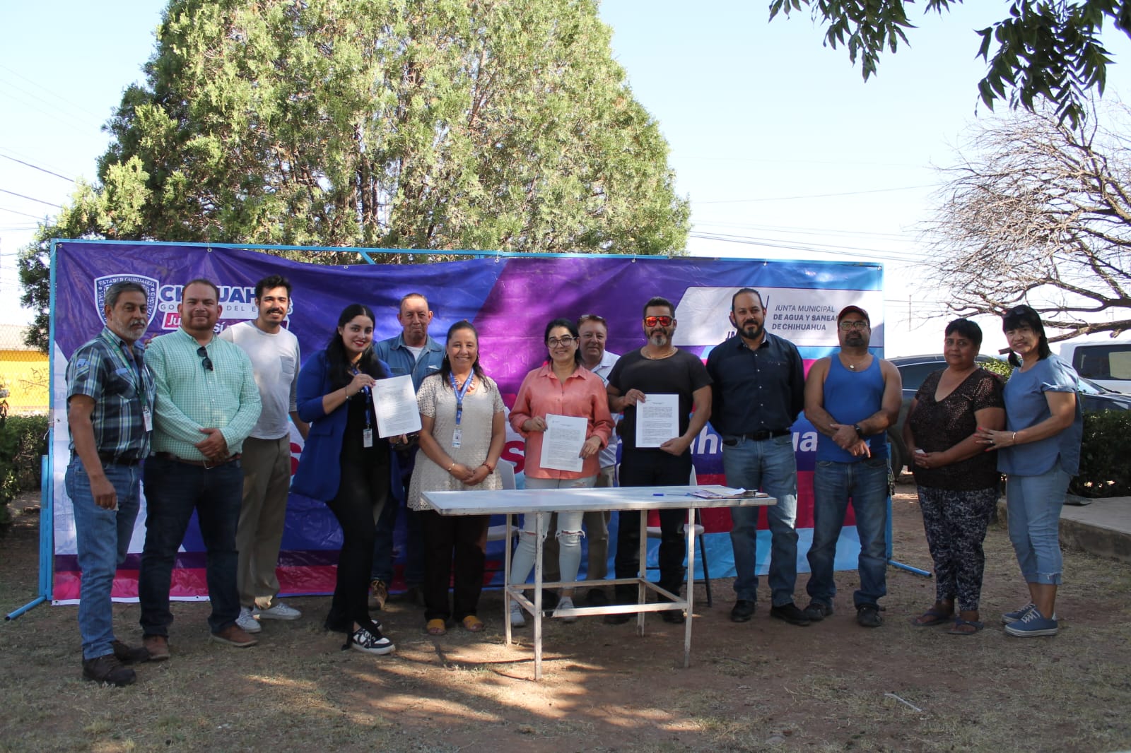 La Junta Municipal de Agua y Saneamiento (JMAS) de Chihuahua, firmó un convenio de colaboración con vecinos de la calle Manuel García, entre Lucio Alvarado y Sabino Torres, de la colonia Deportistas, para iniciar con las obras de introducción del servicio de alcantarillado sanitario.