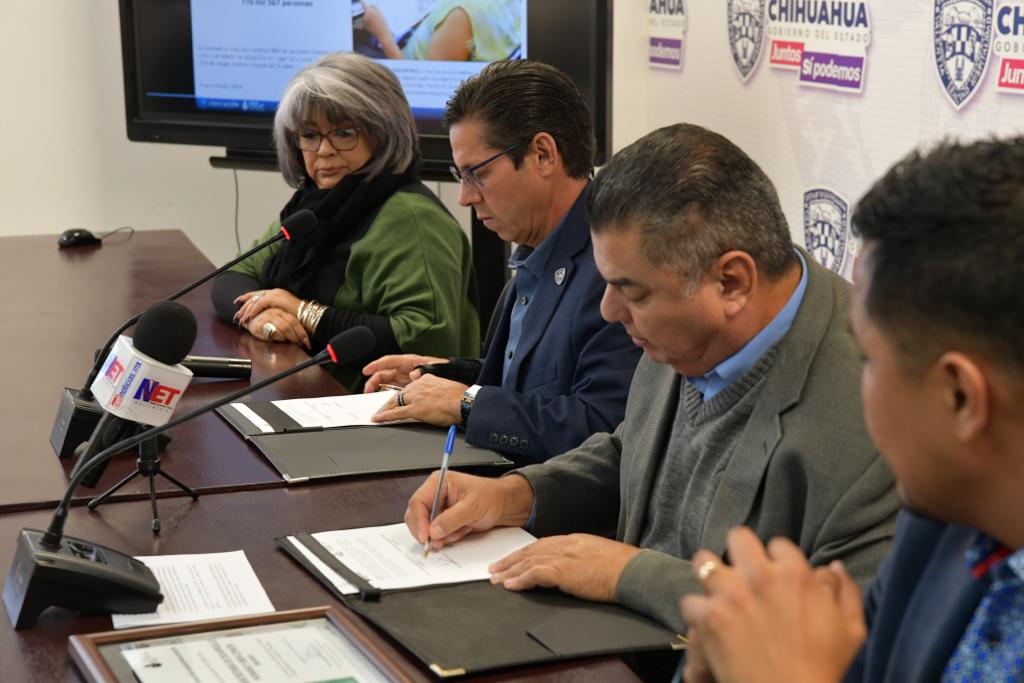 En la firma del convenio estuvieron presentes José Alfonso Bustos Venegas, coordinador de Centros Comunitarios Estatales en Juárez, y Cecilia Hernández Gardea, integrante de la zona tres del ICHEA.