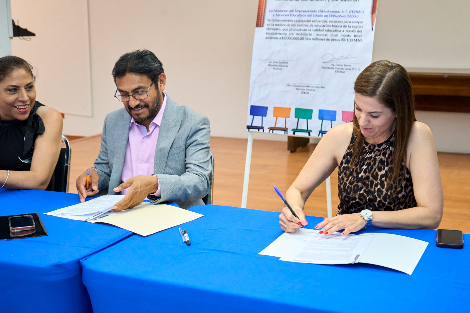 Servicios Educativos del Estado de Chihuahua (SEECH) y la Fundación del Empresariado Chihuahuense (FECHAC) firmaron el convenio de colaboración “Juntos por la Educación al 100”, con lo que se abre la convocatoria para el registro de proyectos de solicitud de recursos que se entregarán en especie a las escuelas ganadoras.