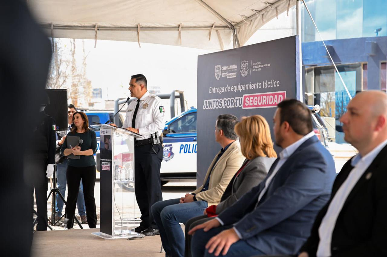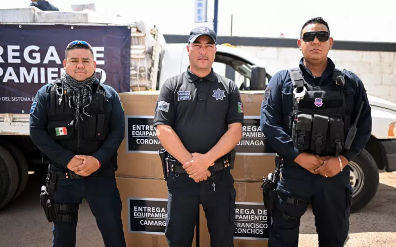 El material consiste en chalecos balísticos, cascos, fornituras, esposas, linternas y guantes tácticos, para efectivos de los municipios de Camargo, La Cruz, San Francisco de Conchos, Jiménez, Ojinaga, López, Coronado, Coyame y Manuel Benavides.