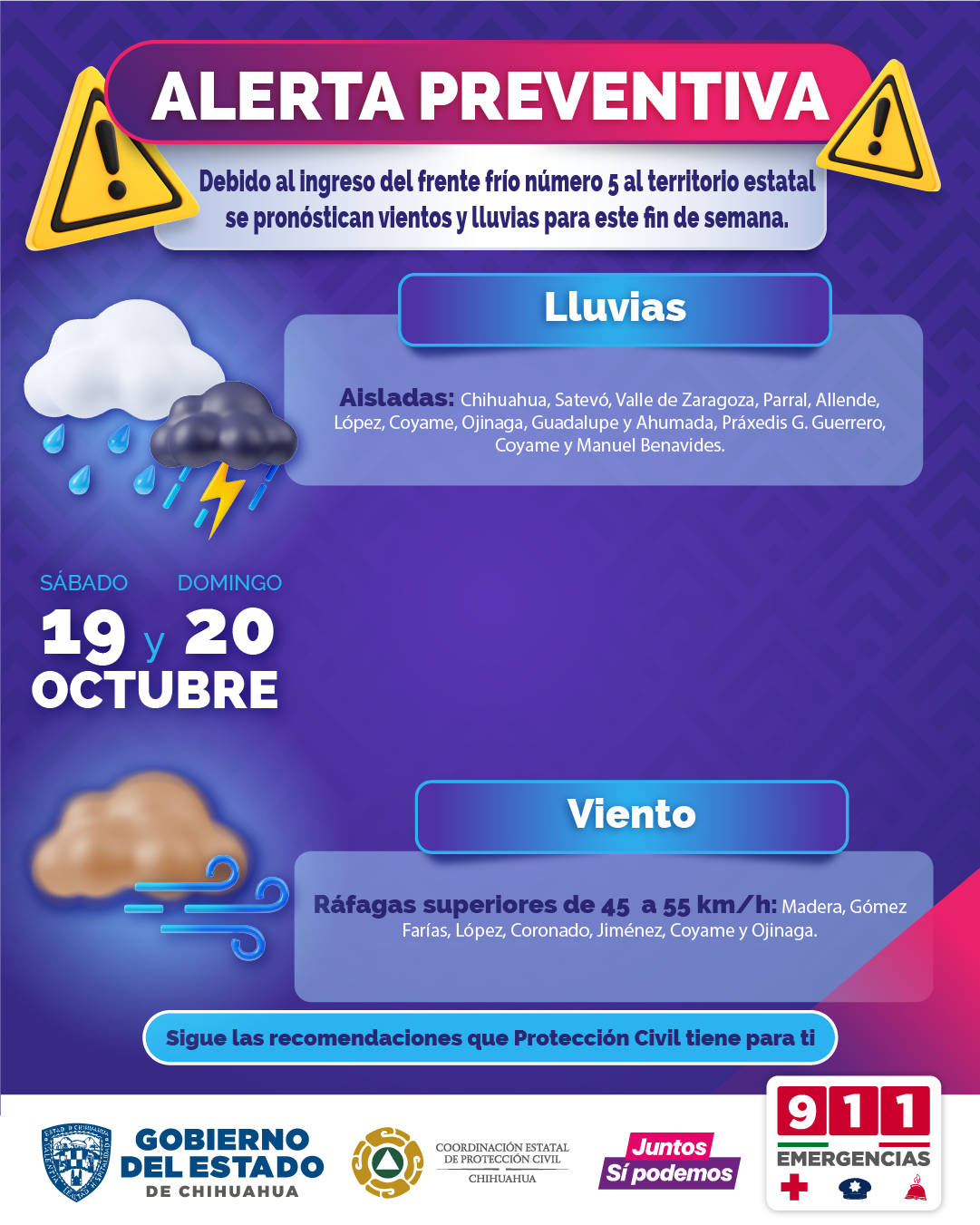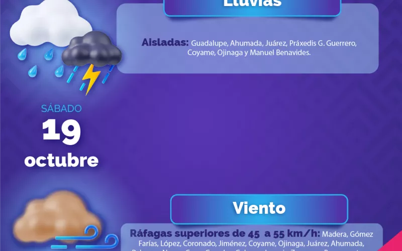 superar los 55 kilómetros por hora (km/h) en Juárez, Ahumada,