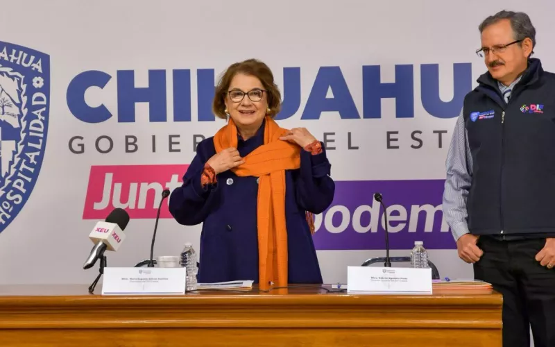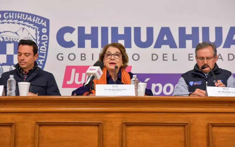 La presidenta del DIF Estatal, María Eugenia Galván Antillón, acompañada del director del DIF, Gabriel Eguiarte y del secretario de Pueblos y Comunidades Indígenas (SPyCI), Enrique Rascón Carrillo, informaron en rueda de prensa sobre esta primera etapa de entrega de paquetes alimenticios que se distribuyeron como parte del programa emergente por la sequía.