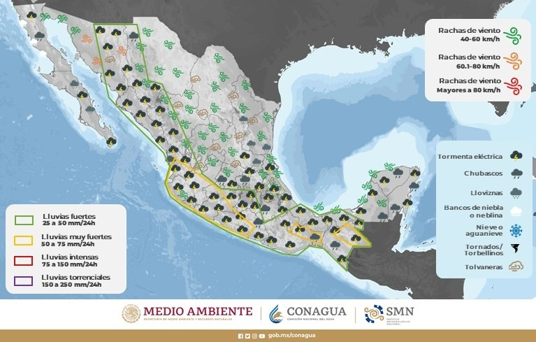 Asimismo, se pronostican lluvias dispersas a moderadas con intervalos de chubascos de 5.1 a 25 milímetros (mm) en Guadalupe y Calvo, Moris, Uruachi, Chínipas, Guazapares, Urique, Morelos y Batopilas, así como en Ocampo y Maguarichi en un rango de 2,1 a 5 (mm)
