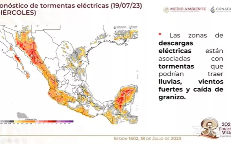 Para los días jueves 20 y viernes 21 de julio, se pronostica que se mantendrán las condiciones meteorológicas asociadas al Monzón Mexicano en la entidad, y se contempla un cielo mayormente despejado a parcialmente nublado con rachas de viento que podrán superar los 45 km/h en Jiménez, Coyame y Manuel Benavides.
