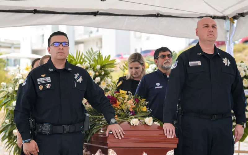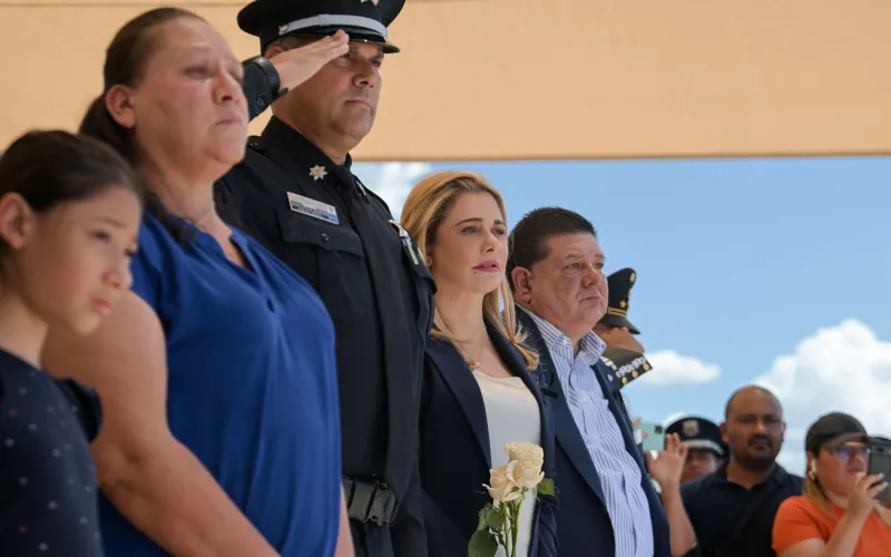 “Hoy rendimos honores al agente Martínez, un hombre que durante casi dos de décadas entregó su vida al servicio y la seguridad de los chihuahuenses, con una vocación admirable y un ejemplo que estoy segura, va a perdurar en la memoria de todos”, dijo.
