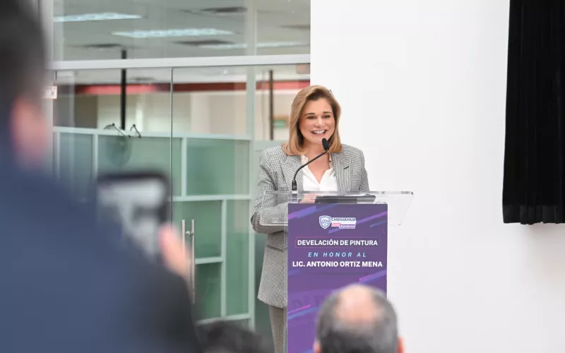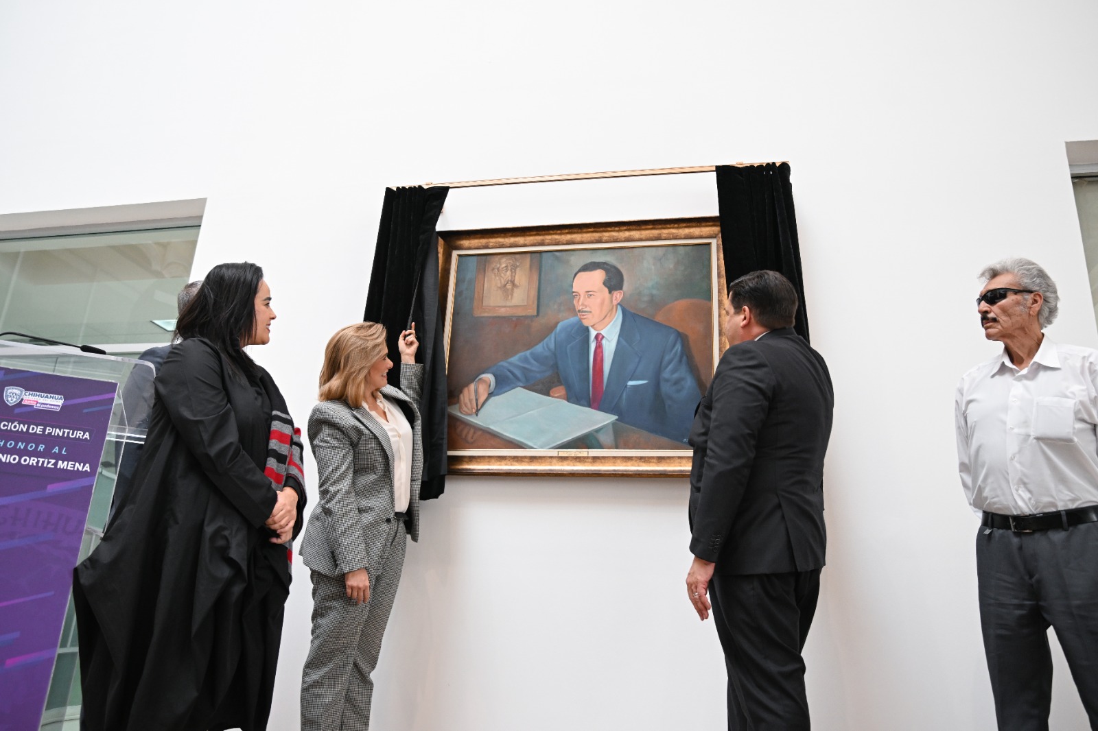 Luego de la inmortalización del nombre de Antonio Ortiz Mena con letras doradas en sesión solemne del Congreso del Estado, la gobernadora encabezó la develación de una pintura creada por el pintor chihuahuense Óscar Soto en honor a Antonio Ortiz Mena, servidor público reconocido por su lucha incansable por las finanzas sanas y el desarrollo económico del país.