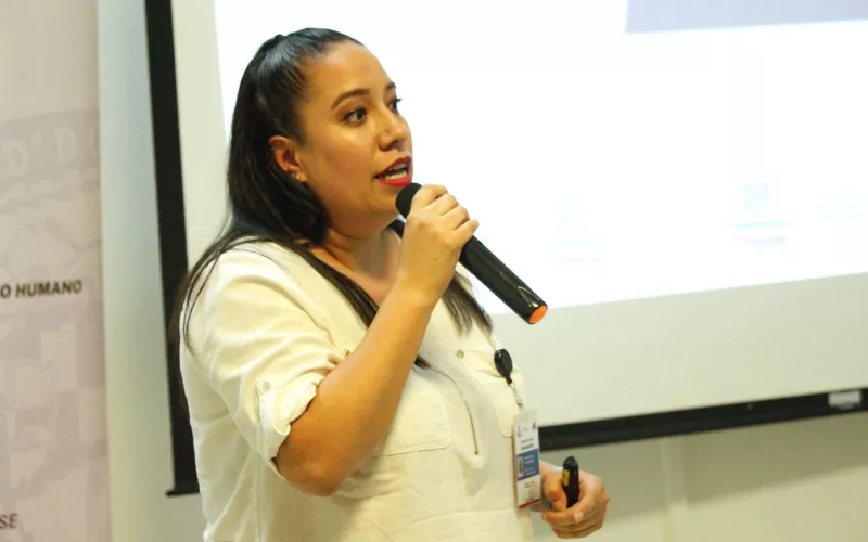 Dania Isabela Zapien Simental, responsable estatal de Salud Perinatal, fue la encargada de impartir la conferencia “Promoción de la Lactancia Materna en Espacios Laborales”, en la cual enfatizó la importancia de ofrecer a las madres trabajadoras un espacio cómodo, cálido, higiénico y adecuado durante el período de lactancia, para que puedan compaginar su trabajo y maternidad de manera efectiva.