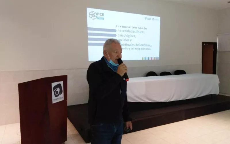 Jesús José Piña Molinar, médico con 30 años de experiencia en la institución y titular del programa de Cuidados Paliativos de PCE, fue el responsable de esta ponencia, en la que instruyó sobre el reconocimiento y manejo de síntomas, así como sobre las atenciones básicas para la persona en situación terminal.