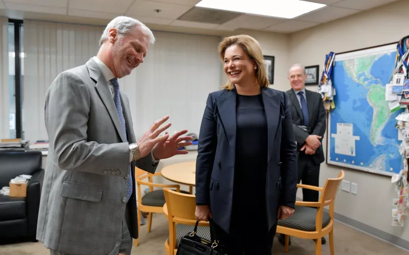 La gobernadora del Estado Maru Campos, participó en un Conversatorio con integrantes del Consejo de las Américas y del Centro Internacional para Académicos Woodrow Wilson.