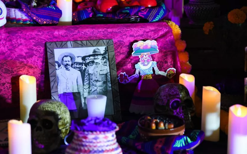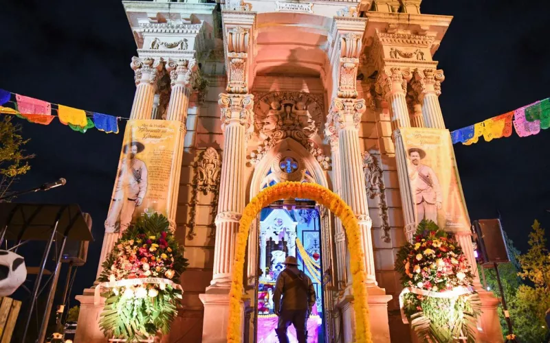 La Secretaría de Turismo de inauguró de manera oficial la exhibición “Presente mi General”, que consiste en un altar de muertos al General Francisco Villa, en las instalaciones del Mausoleo ubicado en el Parque Revolución, antiguo Panteón de la Regla.