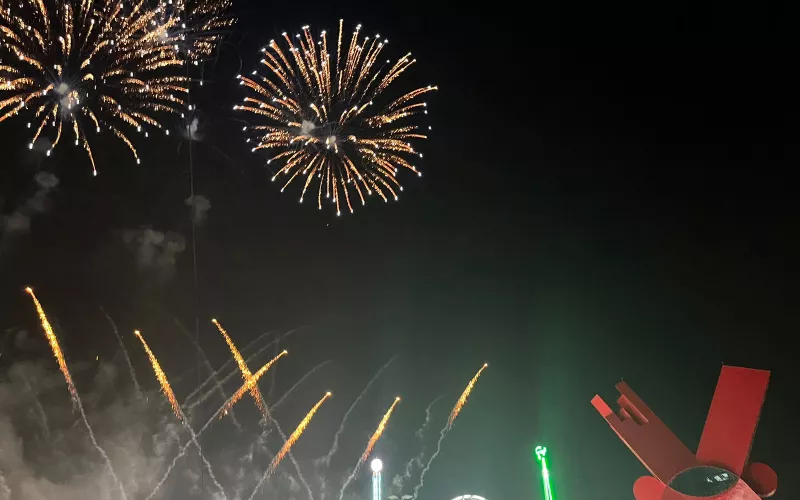 La Plaza de la Mexicanidad se vio abarrotada por los juarenses que acudieron anoche, a la inauguración de la Feria Juárez 2023, acto que fue encabezado por el secretario de Turismo, Edibray Gómez Gallegos, en representación de la Gobernadora Maru Campos.