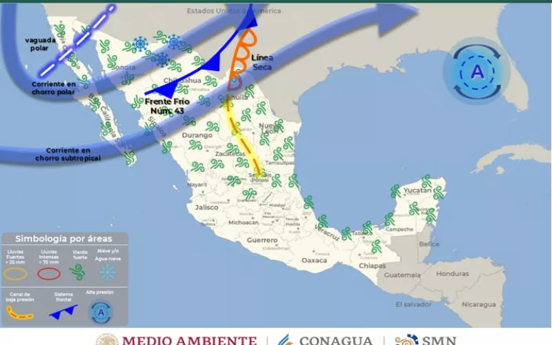 La Coordinación Estatal de Protección Civil (CEPC) mantiene el exhorto a la población ante la presencia de fuertes vientos durante la tarde del jueves 23 de marzo, debido al ingreso del frente frío 43 a la entidad; lo que a su vez puede generar condiciones de formación de tolvaneras y un ligero descenso en las temperaturas máximas durante la mañana del viernes 24.