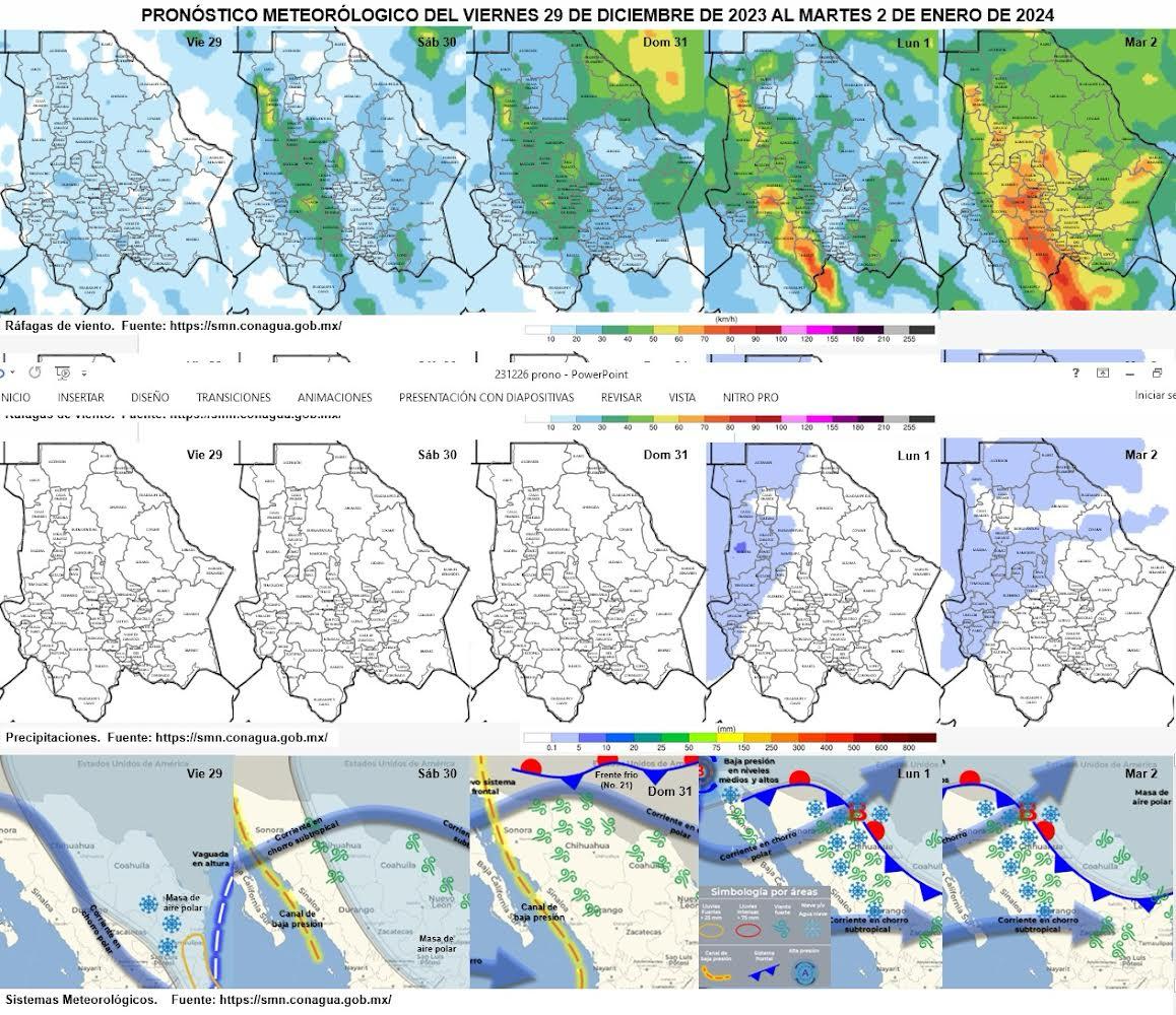 Para el primer día del año, la entrada frente frío 21 en el noroeste y norte del país, en interacción con un canal de baja presión, una vaguada en niveles medios y altos de la atmósfera y la corriente en chorro polar, podría generar la tercera tormenta invernal de la temporada.