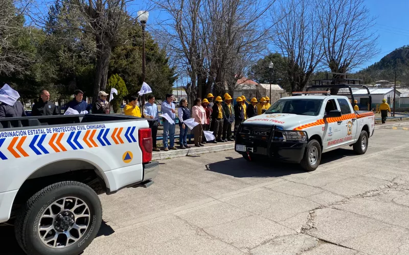 En un evento protocolario en la cabecera municipal de Bocoyna, con personal de los 3 niveles de Gobierno se dio el banderazo de salida para las unidades destinadas a este fin, así como a mujeres y hombres brigadistas capacitados y preparados para atender cualquier situación de incendios a lo largo del estado.