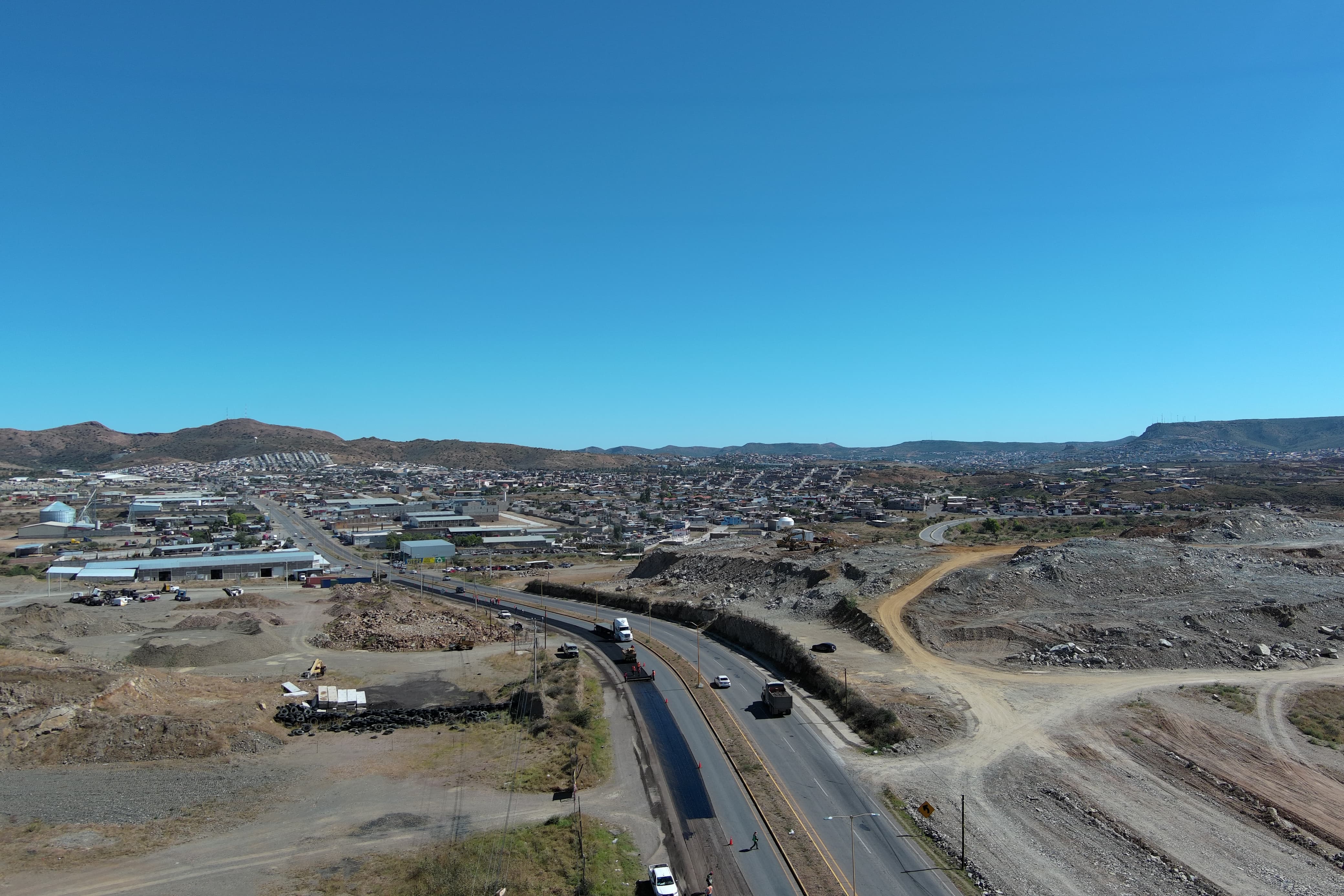 Las labores incluyen el fresado de la carpeta existente, renivelaciones con mezcla asfáltica, colocación de geotextil, el tendido de una nueva carpeta asfáltica, así como la aplicación de pintura y señalización vial.