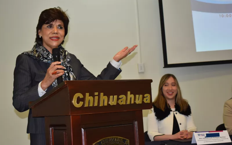 Por su parte la Mtra. Amelia Lucía Martínez Portillo, comisionada presidenta del Instituto Chihuahuense de la Transparencia y Acceso a la Información Pública (ICHITAIP), destacó la importancia de trabajar de manera colaborativa con el Poder Ejecutivo del Estado, en la formación y en la capacitación de sus servidores públicos.