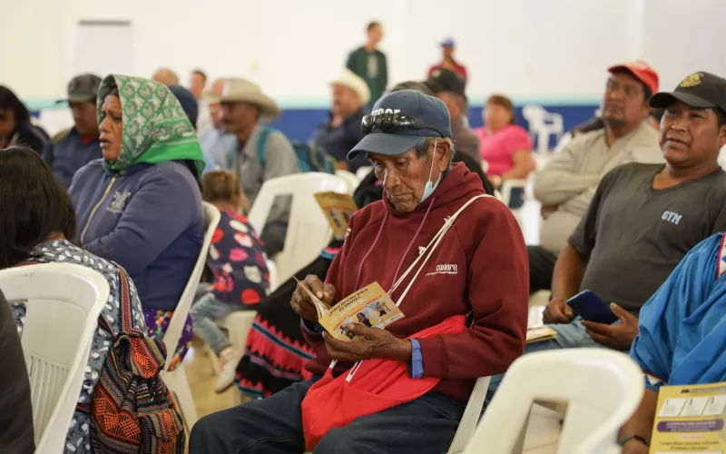 En la sesión de trabajo se contó con la participación de hombres y mujeres del pueblo rarámuri, autoridades tradicionales, municipales y estatales, así como de representantes de instituciones educativas, religiosas y de la sociedad civil.