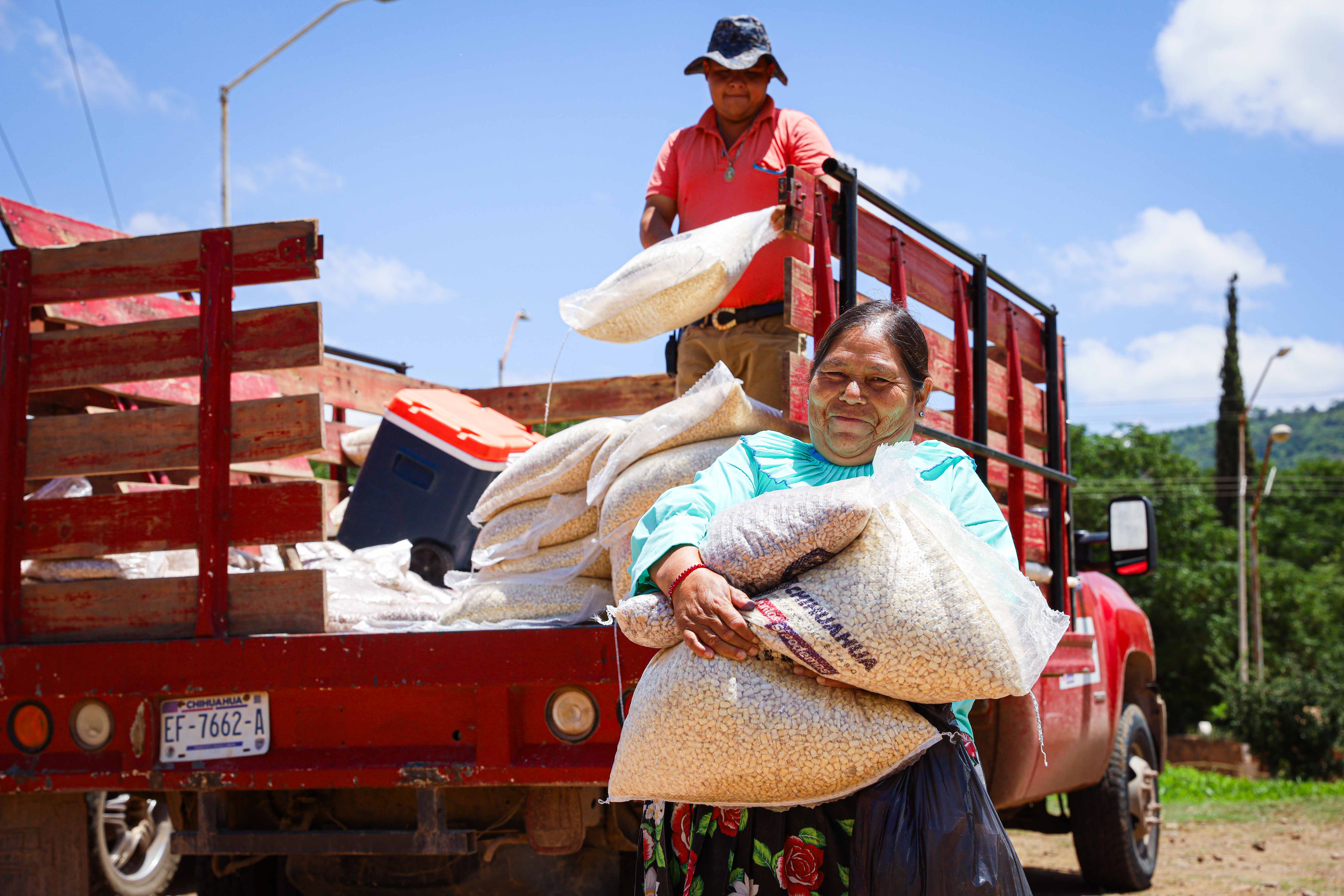Asimismo, se hizo una entrega simbólica de paquetes alimentarios para familias del pueblo rarámuri, como parte de una serie de entregas que realizará la Secretaría y el municipio en beneficio de 350 familias del municipio.