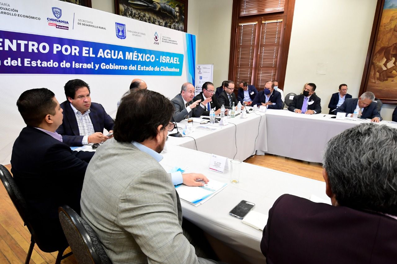 Con el objetivo de atender el tema del agua, uno de los ejes prioritarios del Gobierno del Estado encabezado por Maru Campos Galván, la Junta Central de Agua y Saneamiento, la Secretaría de Desarrollo Rural y la Secretaría de Innovación y Desarrollo Económico, recibieron a Zvi Tal, embajador de Israel en México para el intercambio de experiencias en la gestión hídrica que el Estado de Israel aplicó y que pueden ser replicadas para mejorar las condiciones de Chihuahua en este rubro.