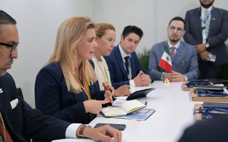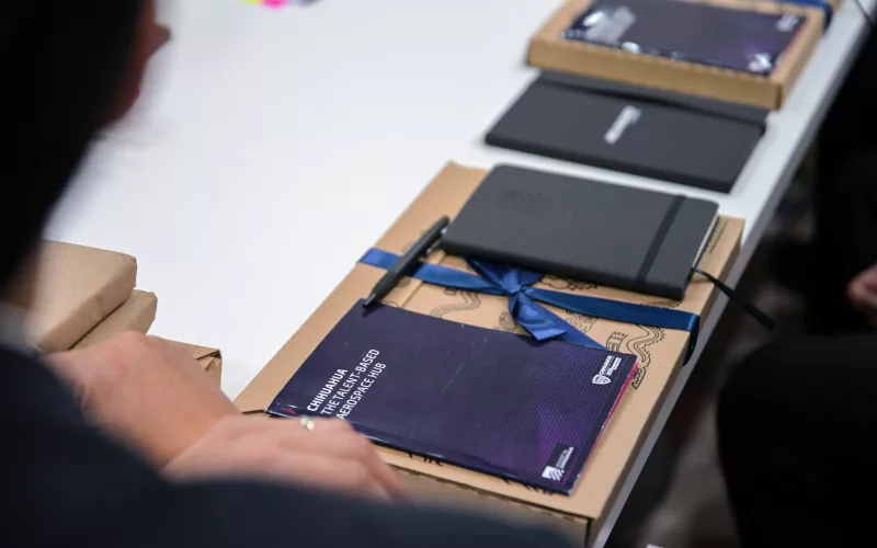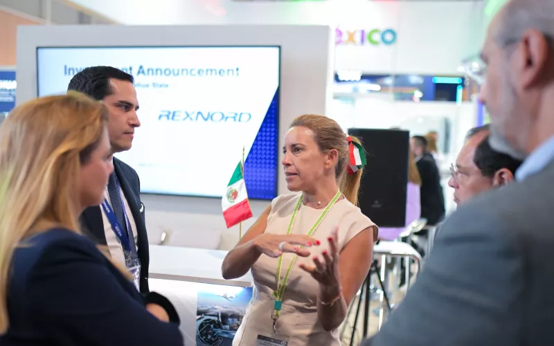 En el Pabellón de México, sostuvo una reunión con Jamie Quilter, vicepresidente y gerente general del Sector de Consumo y Aeroespacial de Rexnord Corporation, donde ambos dieron a conocer detalles sobre el inicio de operaciones de la compañía en territorio chihuahuense.