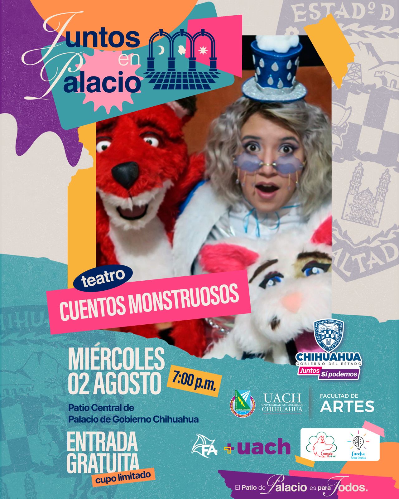Con la obra de teatro “Cuentos Monstruosos” que se presenta el próximo miércoles 2 de agosto, el Gobierno del Estado inicia con las tardes “Juntos en Palacio”, proyecto que incluye una serie de actividades lúdicas con el objetivo de que visitantes locales y foráneos, en especial las niñas y niños, se apropien de la sede del Ejecutivo.