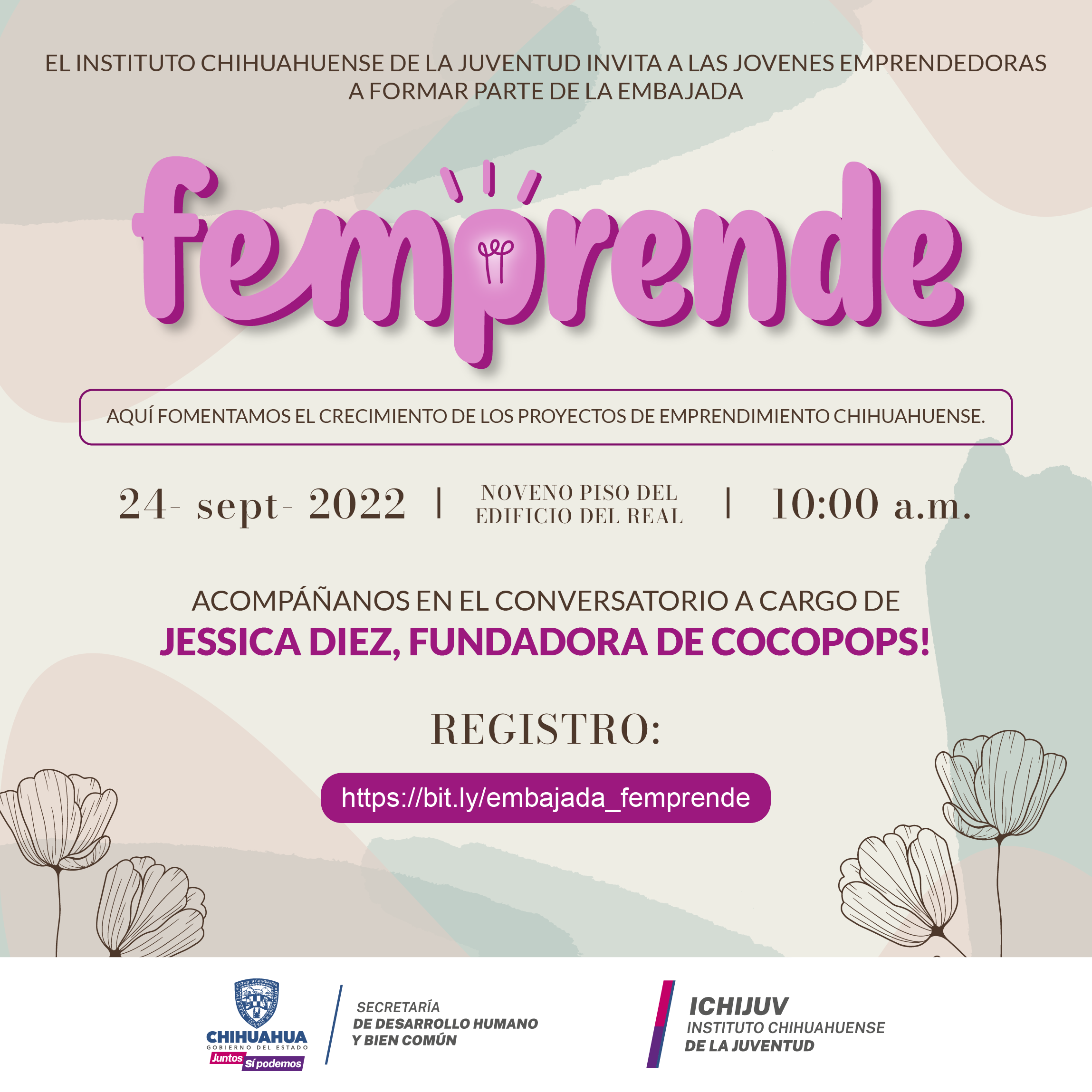 Con la finalidad de generar espacios para las jóvenes chihuahuenses emprendedoras, el Gobierno del Estado, a través del Instituto Chihuahuense de la Juventud (ICHIJUV) invita a un conversatorio y a formar parte de la Red FEMPRENDE.