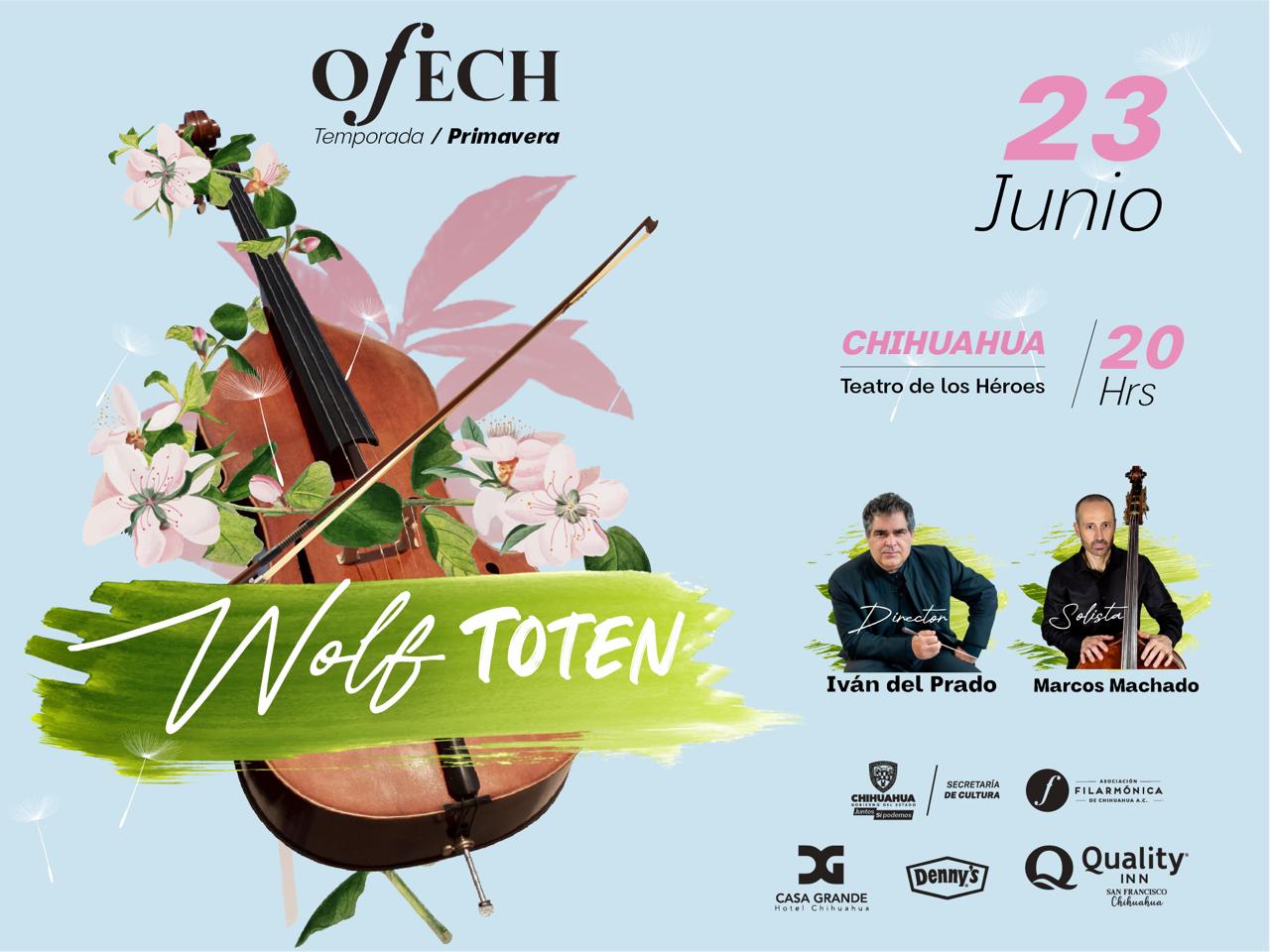 La Secretaría de Cultura del Estado de Chihuahua invita al último concierto de la Temporada de Primavera 2023 de la Orquesta Filarmónica del Estado de Chihuahua (OFECh) “Wolf Totem”, que se presenta el viernes 23 de junio a las 20:00 horas en el Teatro de los Héroes.