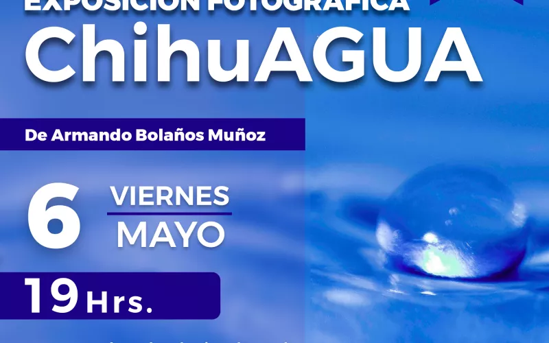 La Secretaría de Cultura del Estado de Chihuahua a través del Centro Cultural Palacio Alvarado, invitan a las y los ciudadanos a acudir a la exposición fotográfica “ChihuAGUA” la cual se inaugurará este viernes 6 de mayo en punto de las 7:00 de la tarde con el objetivo de crear conciencia sobre los cuidados del agua y apreciar todas sus manifestaciones en sus diferentes composiciones.