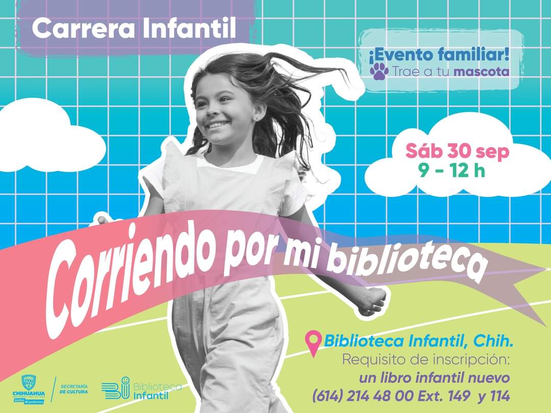 La Secretaría de Cultura del Estado, a través del programa de Fomento a la Lectura y Escritura, invita al evento "Corriendo por mi biblioteca", que se efectuará el sábado 26 de agosto a partir de las 10:00 horas, en la Biblioteca Infantil.