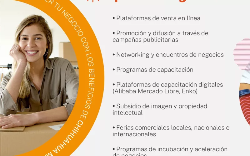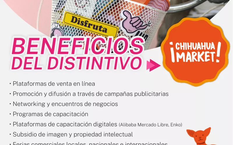 Asimismo, los beneficios que ofrece ¡Chihuahua Market! incluyen el acceso a plataformas de venta en línea, promoción y difusión a través de campañas publicitarias, networking y encuentros de negocios, programas de capacitación y acceso a plataformas de capacitación digitales como Alibaba, Mercado Libre y Enko.