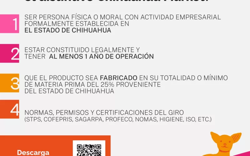 Los interesados pueden acceder a más información a través de las redes sociales de Chihuahua Market o comunicarse al teléfono 6144423329, además de descargar los requisitos en https://tinyurl.com/ycx2cawx y realizar su registro en la liga https://tinyurl.com/nrvzf5bc