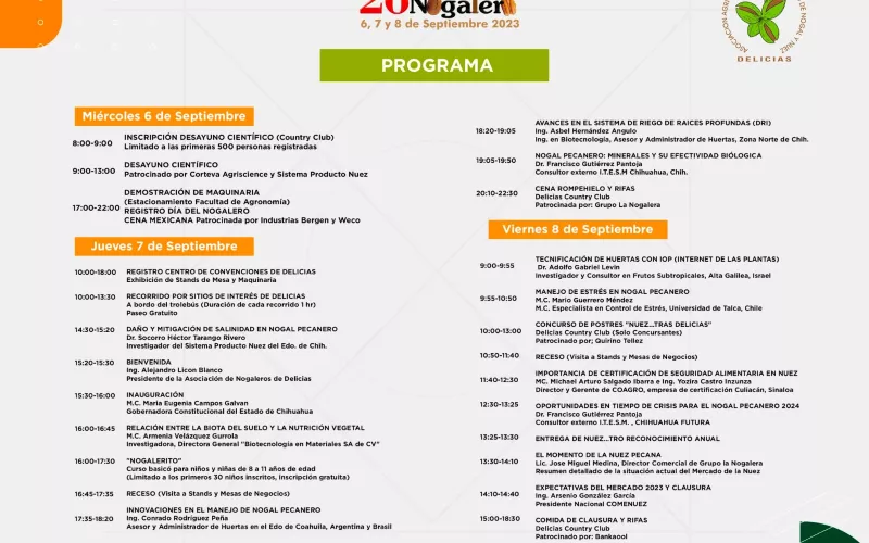 La Secretaría de Innovación y Desarrollo Económico (SIDE) y la Asociación de Nogaleros de Delicias, invitan la edición 26 de la Expo “Día del Nogalero”, que se llevará a cabo del 6 al 8 de septiembre en el Centro de Exposiciones y Convenciones de la localidad.