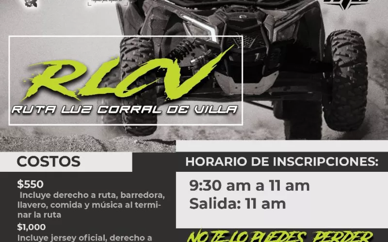 Las actividades continúan el domingo 28 en punto de las 11:00 horas en el Lienzo Charro, donde se dará el banderazo de salida a la “Ruta Todo Terreno Luz Corral”, que tendrá más de 90 kilómetros de recorrido, en el que los participantes visitarán los paisajes más representativos del municipio de Riva Palacio.