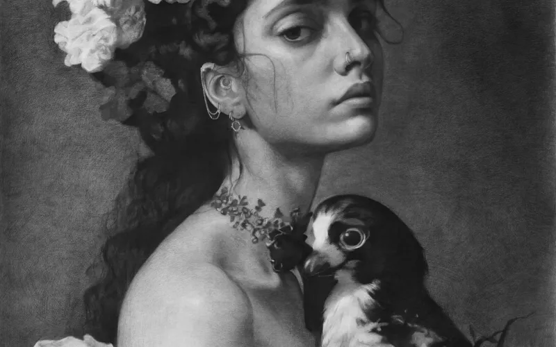 En esta colección Pepe Salgado nos muestra figuras femeninas, exaltando la gran belleza de los rostros, la profundidad en las miradas y sensualidad en las telas. Con un ambiente cargado de misticismo, en cada obra invita a observarla con detenimiento por el fino arte y maestría del carbón sobre papel.