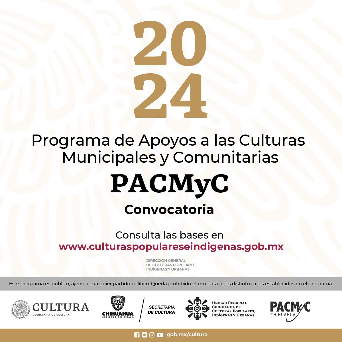 Las secretarías de Cultura de Chihuahua y Federal, invitan a participar en la convocatoria Programa de Apoyo a las Culturas Municipales y Comunitarias (PACMyC 2024), por medio de la cual se pueden desarrollar proyectos que estimulen, y promuevan el patrimonio de las culturas indígenas y populares de Chihuahua.