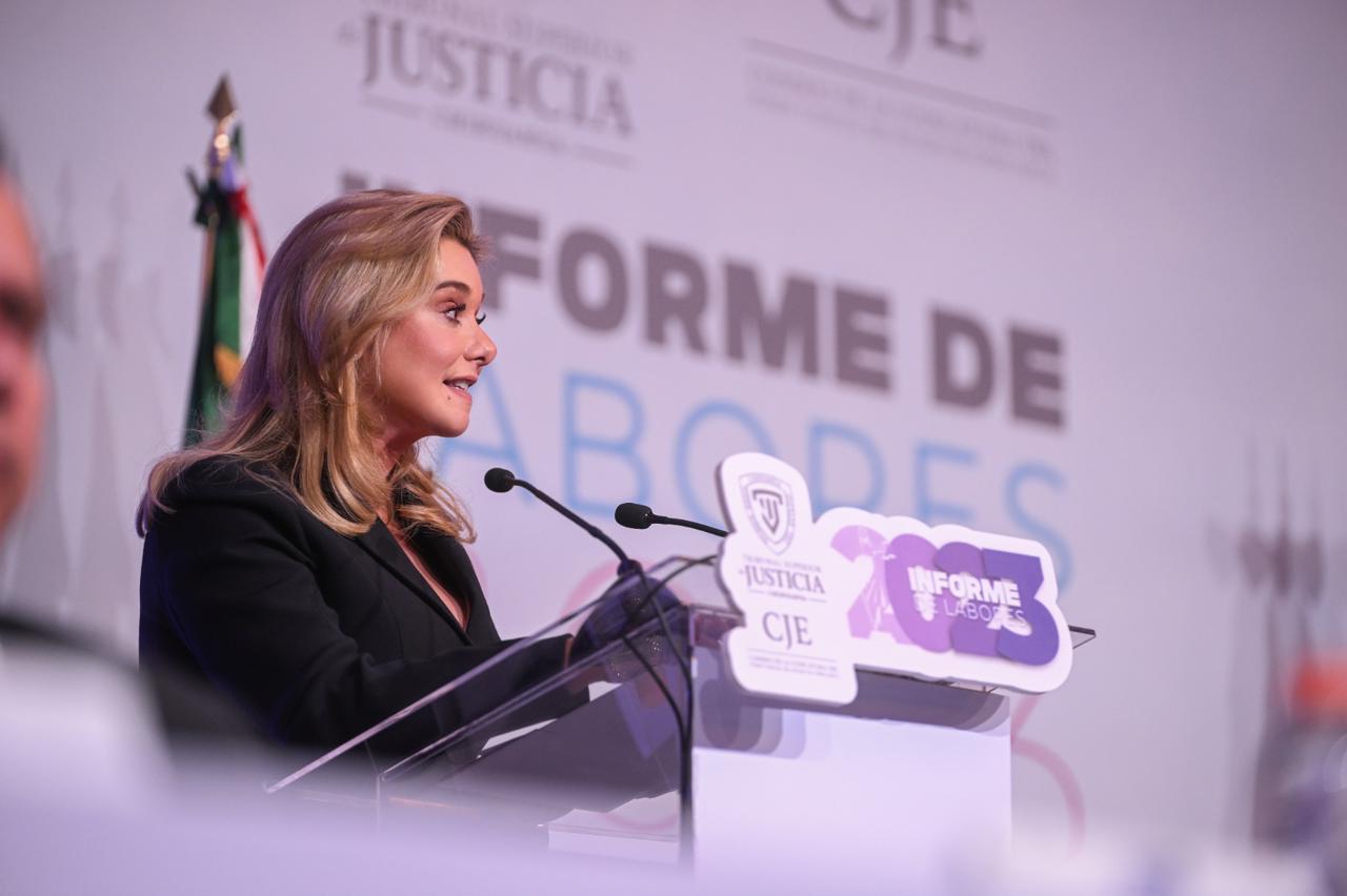 Al asistir a la presentación del Informe de Labores 2023, del Tribunal Superior de Justicia del Estado (TSJE), la gobernadora Maru Campos aseguró que: “Restituir la confianza en las instituciones, solo es posible con transparencia y la seguridad de que nadie está por encima de la ley”.