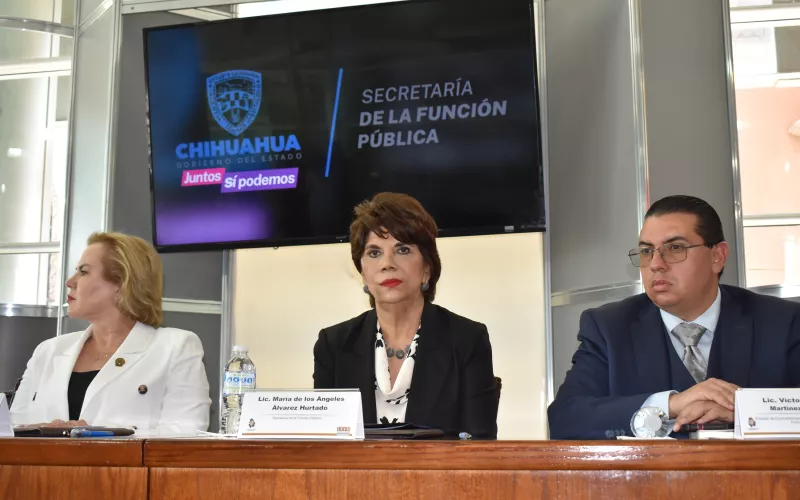 El presídium también estuvo conformado por Víctor Manuel Martínez García, director de Contrataciones Públicas de la SFP; Ottofriderch Rodríguez Alonso, secretario de Administración; Everardo Rojas Soriano, secretario de Asuntos Legislativos y jurídicos, y por Héctor Mario Montoya Estrada, titular del Órgano Interno de Control del H. Congreso del Estado de Chihuahua.