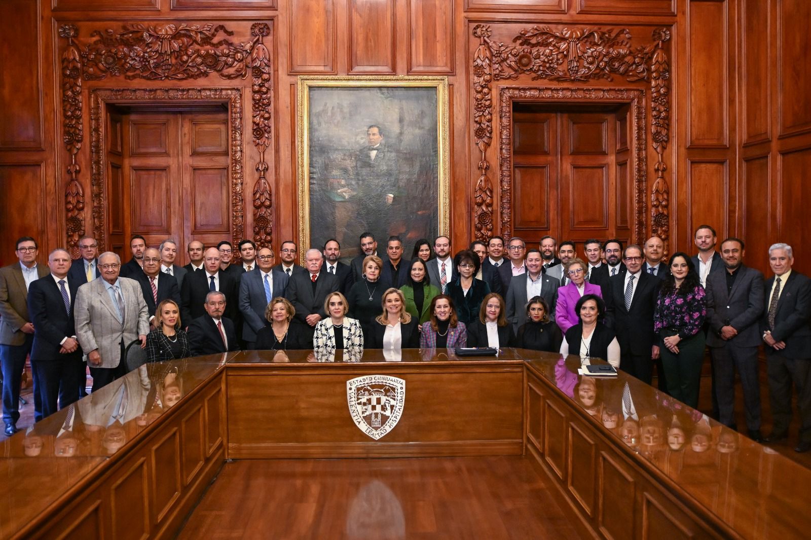 El encuentro se celebró en Palacio de Gobierno, donde la mandataria estatal dio detalles sobre la situación financiera que guarda el Estado, la cual desde hace dos años y medio presenta un superávit, gracias a las acciones emprendidas por la Administración que encabeza.