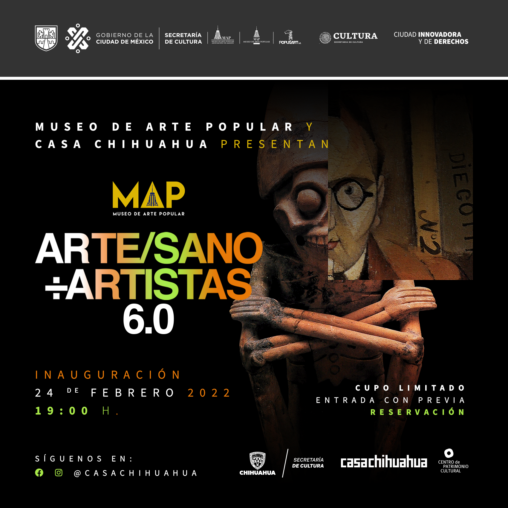 Casa Chihuahua Centro de Patrimonio Cultural, inaugurará este jueves 24 de febrero la exposición temporal “Arte/Sano entre artistas 6.0” del Museo de Arte Popular (MAP) de la Ciudad de México (CDMX), que permanecerá abierta al público en general del 25 de febrero al 19 de mayo.