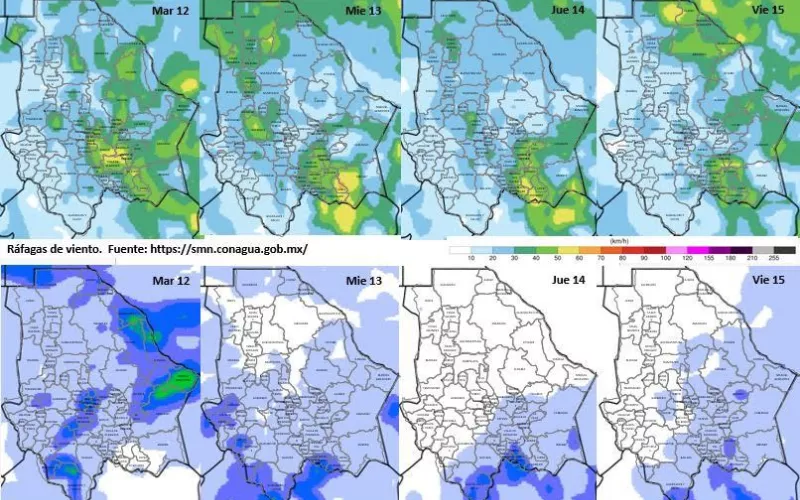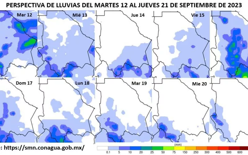 En cuanto a las lluvias aisladas de 0.1 a 2 mm se prevén en partes de la zona sureste, incluido: Parral, Allende y Jiménez y pueden estar acompañadas de actividad eléctrica y posible caída de granizo.