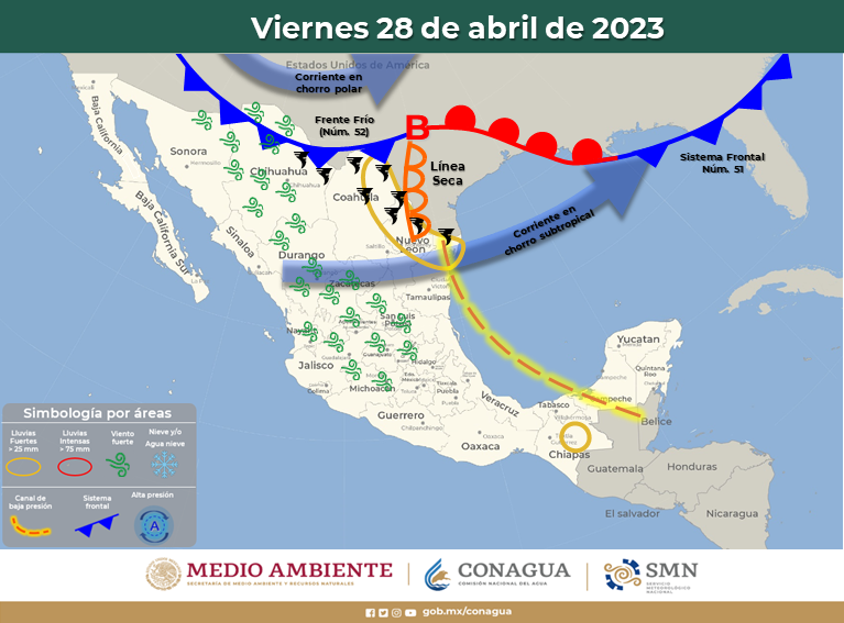 La Coordinación Estatal de Protección Civil del Gobierno del Estado emitió un aviso preventivo debido a la entrada del Frente Frío número 52 a la entidad, lo que provocará fuertes vientos e incluso, la probabilidad de formación de tornados o torbellinos que pueden estar acompañados de baja visibilidad en tramos carreteros.